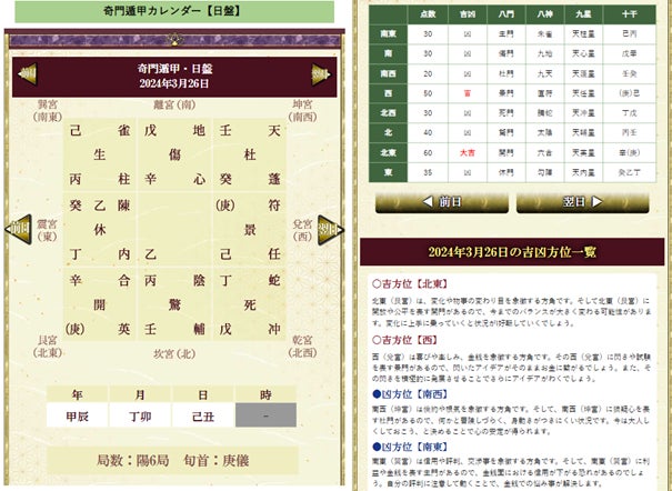 未来の運勢や吉凶方位もチェック可能。
