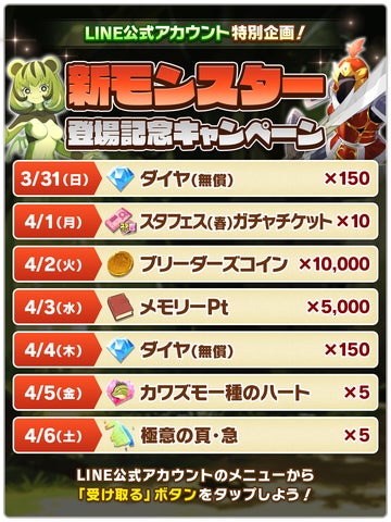 - 育成ランキングイベント「モンスターグランプリ」やプレゼントキャンペーンも開催
