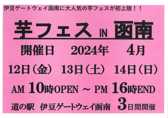 • 2024年4月12日から14日に第1回伊豆ゲートウェイ函南で芋フェス開催