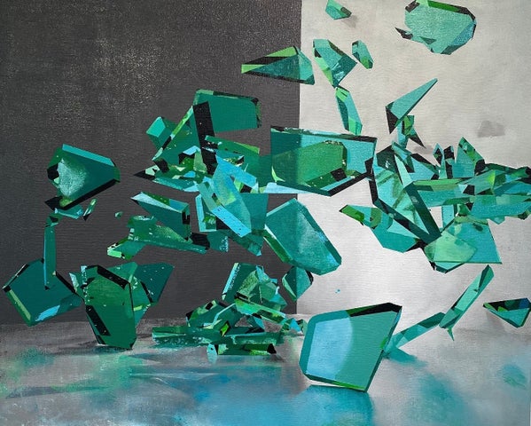 平面表現を追求する9名のアーティストが参加し、金井花織は液晶画面の「光」を絵画で表現し、ガラスが割れるアニメーションを通じて「変化」について考察します。