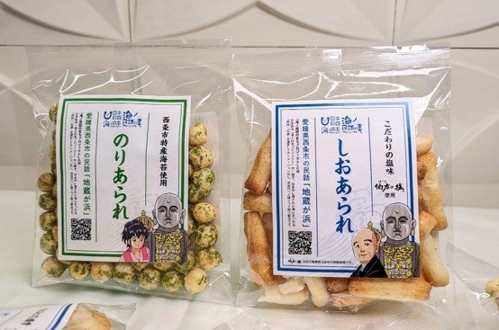 日本昔ばなし協会と日本財団が進める「海ノ民話のまちプロジェクト」では、愛媛県西条市の民話「地蔵が浜」をテーマにした「のりあられ・しおあられ」が2024年3月27日から販売されます。