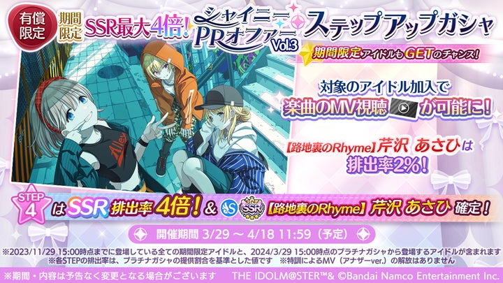 - SSRサポートアイドル、CDジャケット、特典内容、2024年4月17日、屋外広告、オリジナルアイテム、TVアニメ、新作アプリゲーム