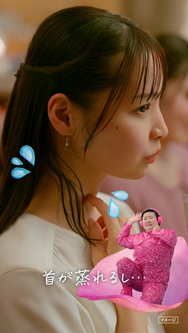 CM公開を記念して、やす子さんへの特別インタビューも行われ、撮影や衣装についての感想や汗に関する悩み、新しい髪型やポーチの中身について質問がありました。