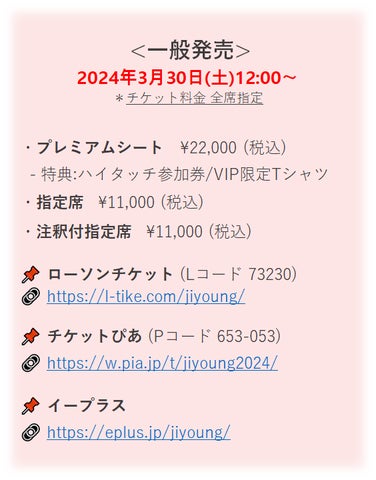 知英と一緒に楽しい時間を過ごしましょう!チケットは全席指定で、プレミアムシートは¥22,000、指定席や注釈付指定席は¥11,000です。