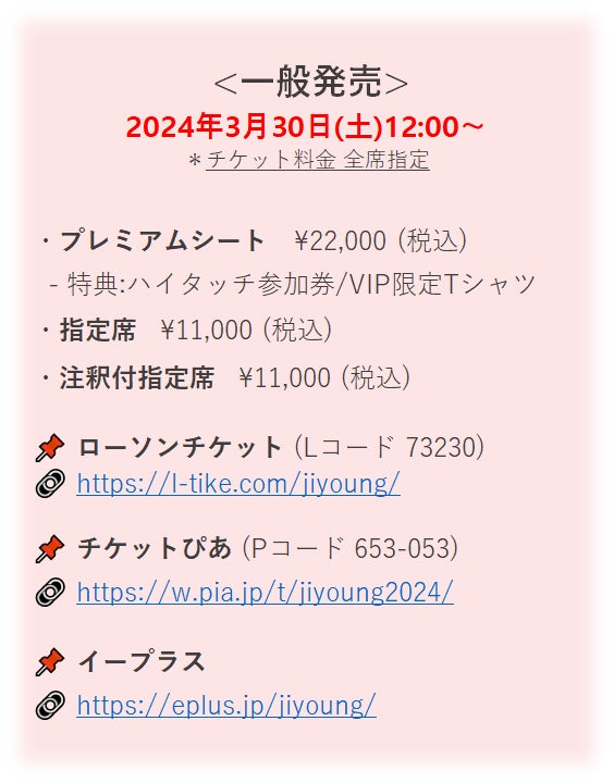 知英(ジヨン)が2024年4月19日(金)に大阪、20日(土)に東京で開催するファンミーティングツアー「Re: Bicycle」のチケット一般販売が3月30日(土)正午からスタートします。
