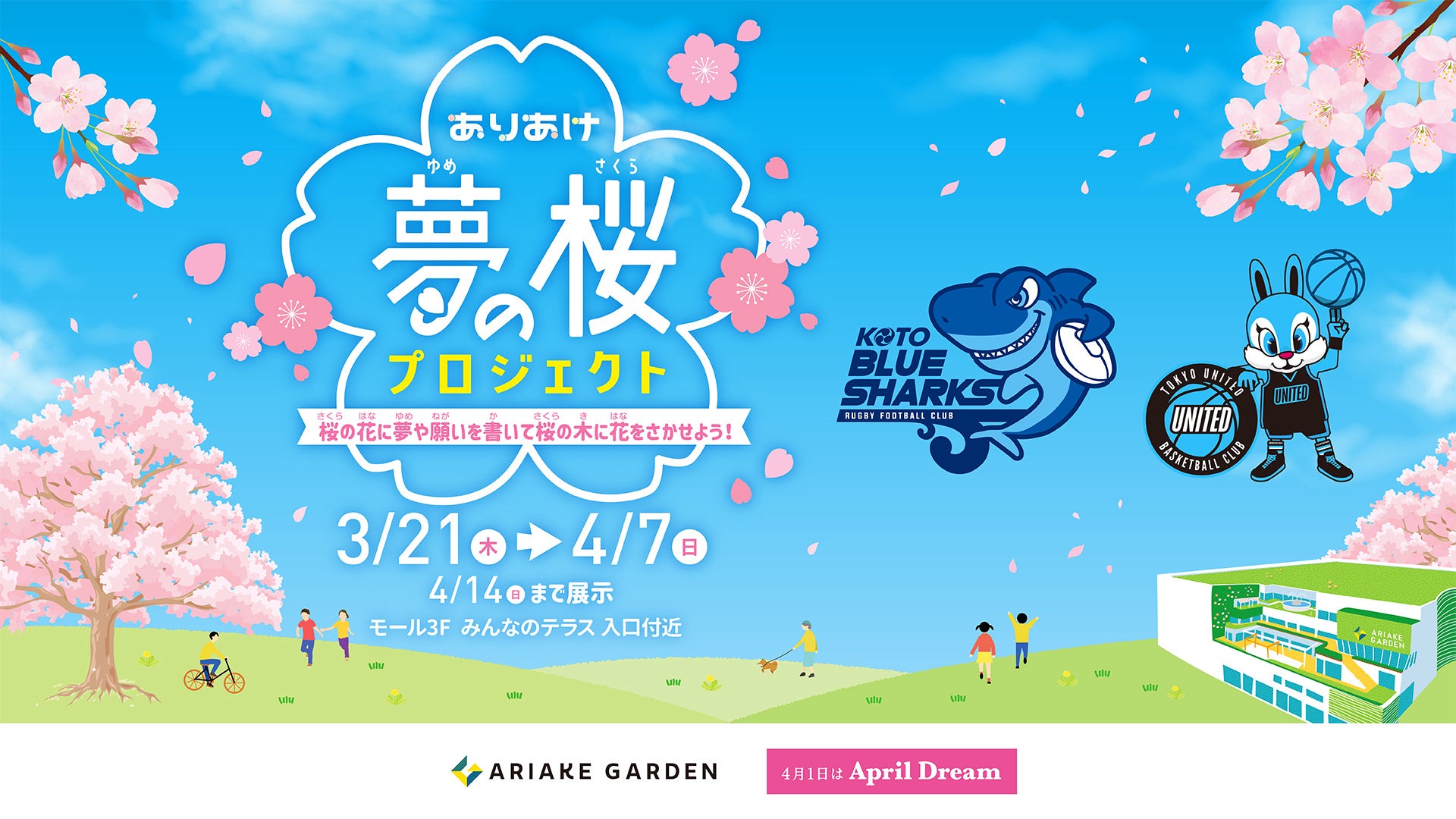 住友不動産商業マネジメントは、「April Dream」に参加し、有明ガーデンで子どもたちが夢を発信するイベント「ありあけ夢の桜プロジェクト」を開催します。