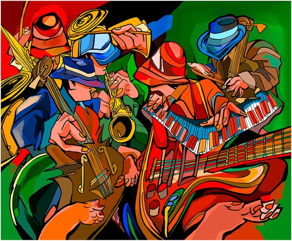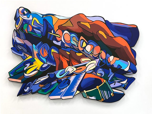 ナカの作品は音楽やテクノロジー、人間の経験を探求し、伝統的なキャンバスにとどまらず、変形パネルを用いた立体的な作品が展示されます。