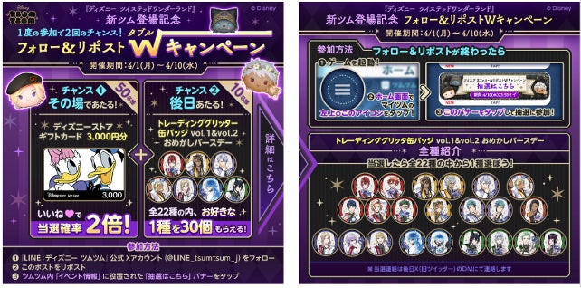 - Wキャンペーン実施&LINE:ディズニー ツムツム世界累計1億ダウンロード