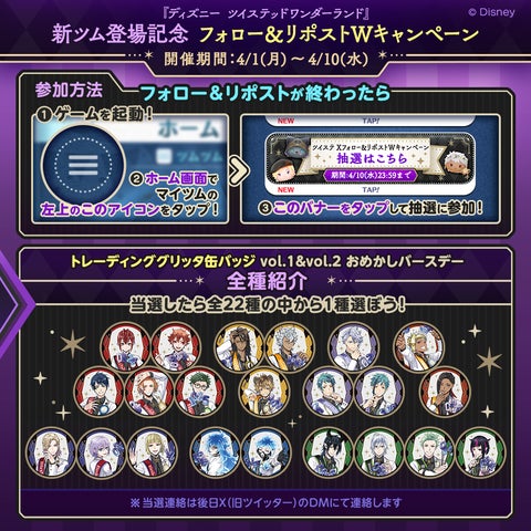 4月1日から『ディズニー ツイステッドワンダーランド』に新ツム3種が登場しました。