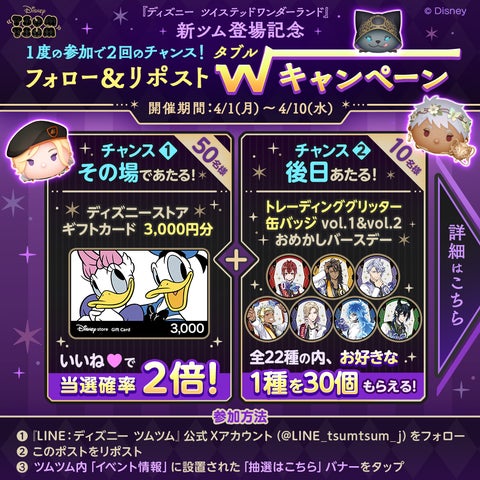 さらに、ディズニーストア ギフトカードやトレーディンググリッター缶バッジが当たるWキャンペーンも実施中です。