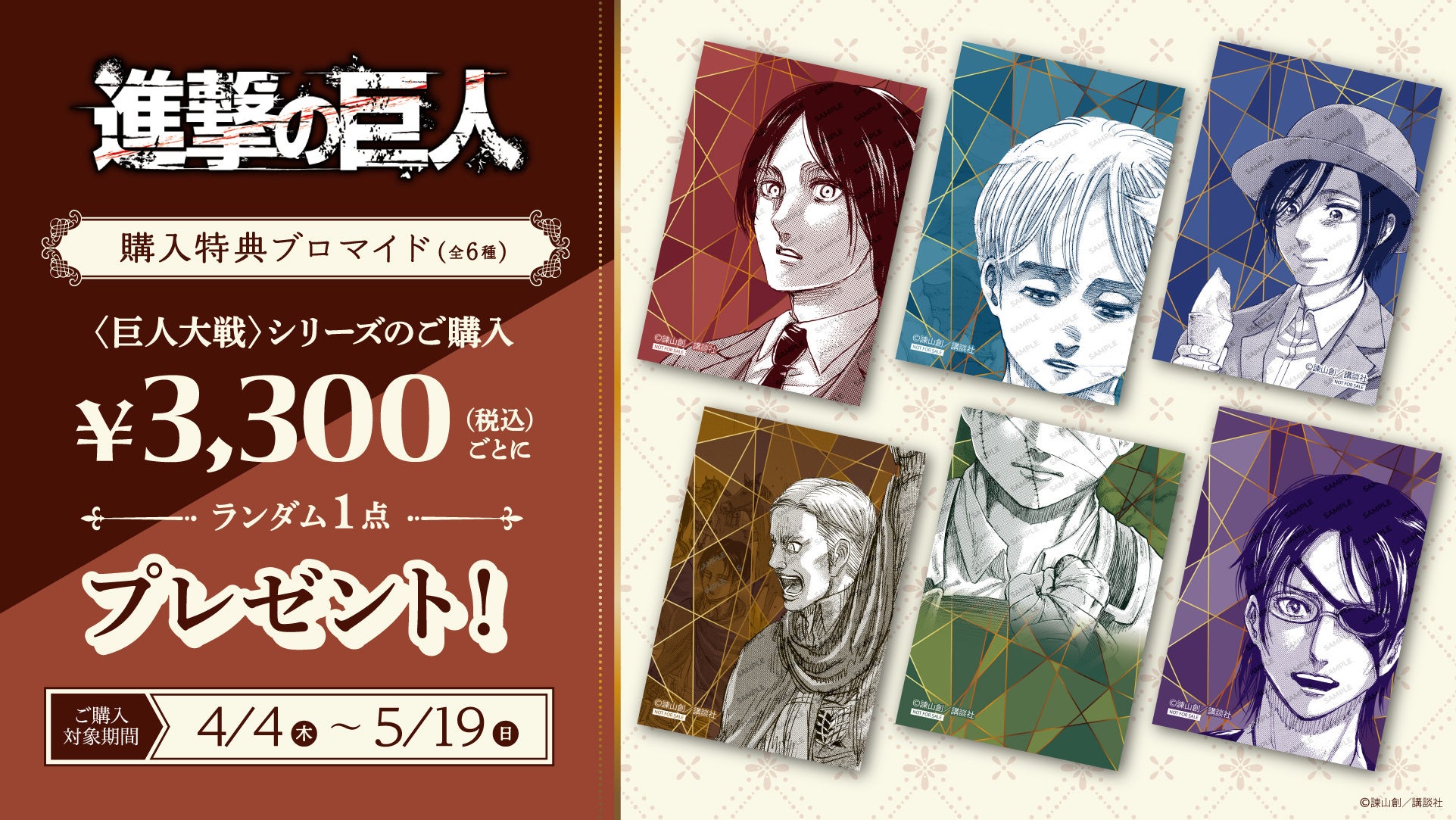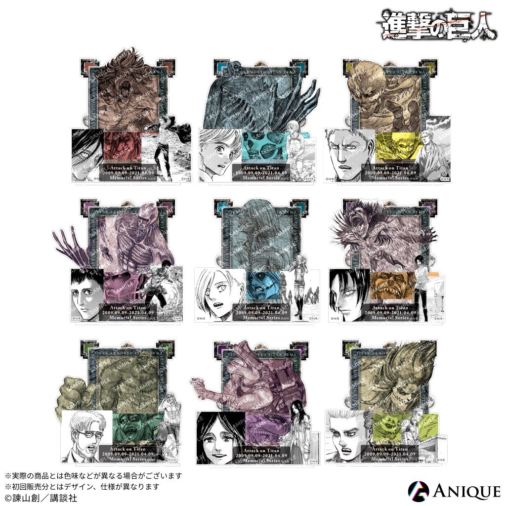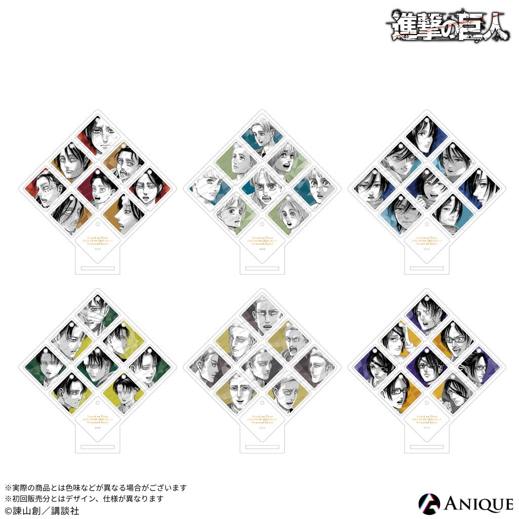 漫画『進撃の巨人』オリジナルグッズ、アクリルスタンド、アクリルコレクション、ホログラム缶バッジ、Tシャツ、オリジナルブロマイド