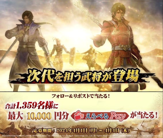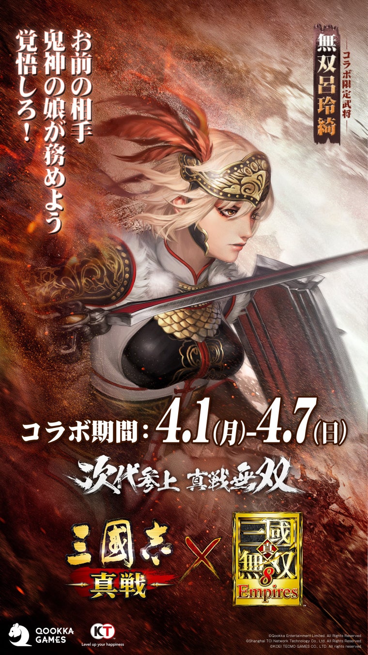 2024年4月1日より、Qookka Entertainment Limitedがコーエーテクモゲームスの『真・三國無双8 Empires』とのコラボをスタートします。