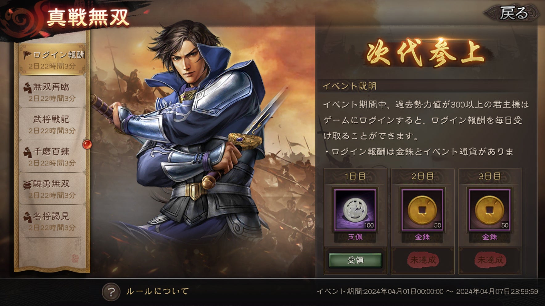 - 人気武将登場&豪華特典