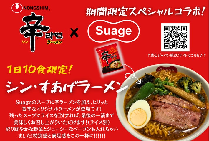 この旨辛タッグメニューは、辛ラーメンとSuageが融合し、究極の旨辛スープカレーラーメンを提供します。