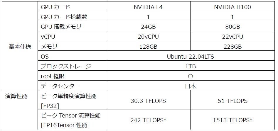 - NVIDIA H100、NVIDIA L4、ConoHa for AI