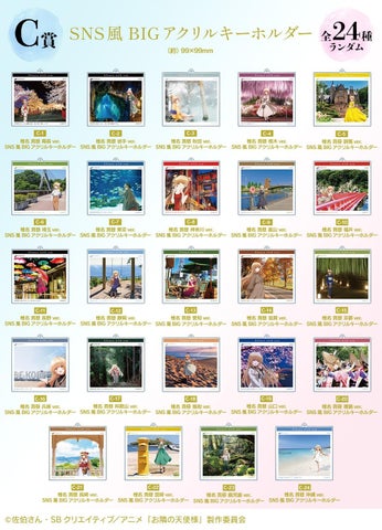- 1回770円、キャラファイングラフ、BIGアクリルスタンド、SNS風BIGアクリルキーホルダー、A3マット加工ポスター、缶バッジ、特典ブロマイド