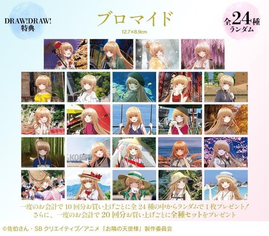 特典として、特典ブロマイドが用意されており、10回ごとにランダムで1枚、20回ごとに全種セットがプレゼントされます。