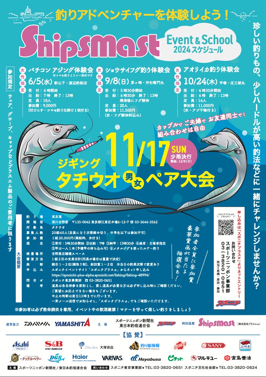 Shipsmast×スポニチ 2024年 釣り教室&大会!6月5日、東京湾でアジング体験!参加費9,000円、エントリー受付中!
