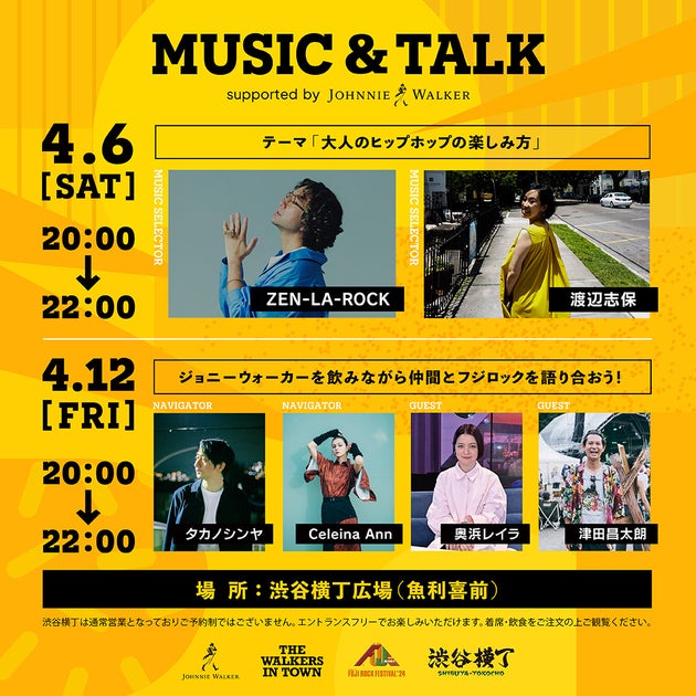 4/6は「大人のヒップホップの楽しみ方」、4/12は「フジロックでの出会い」をテーマにしたイベントです。
