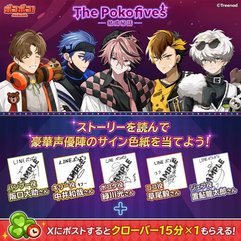 LINEヤフー株式会社が展開する3マッチパズルゲーム「LINE ポコポコ」にて、ポコタたちが美男子に変身し、新星アイドル『The Pokofives』として登場するイベントが開催されます。