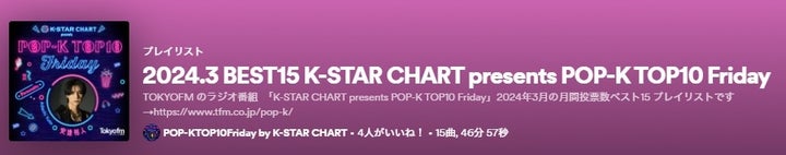 - Spotifyの番組公式プレイリストでは上位15曲が公開