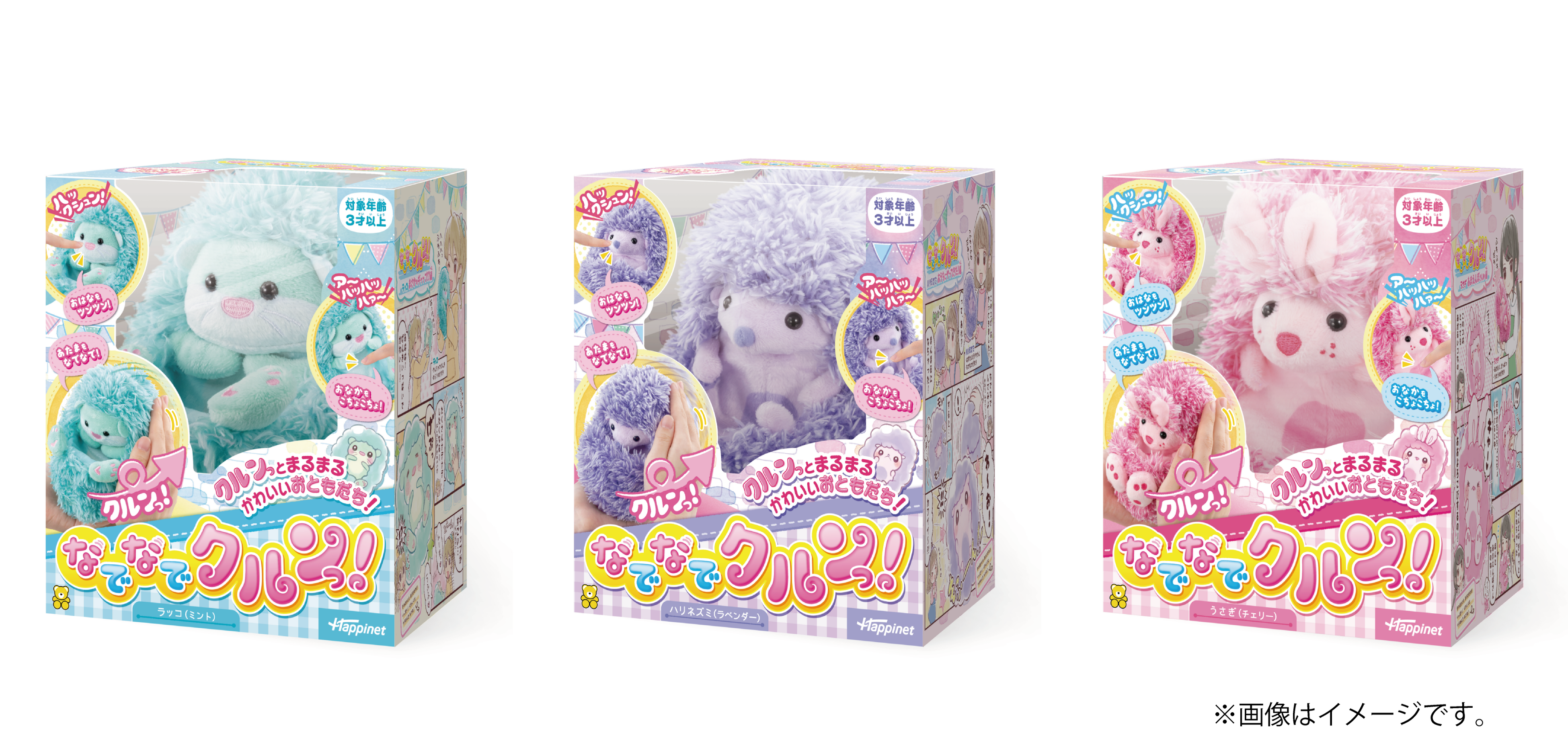 ■商品名:なでなでクルンっ!(ハリネズミ(ラベンダー)、うさぎ(チェリー)、ラッコ(ミント))