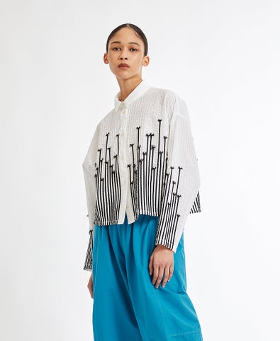 - 職人の技術と天然素材を使用し、芸術的なピンタックを特徴とする。
