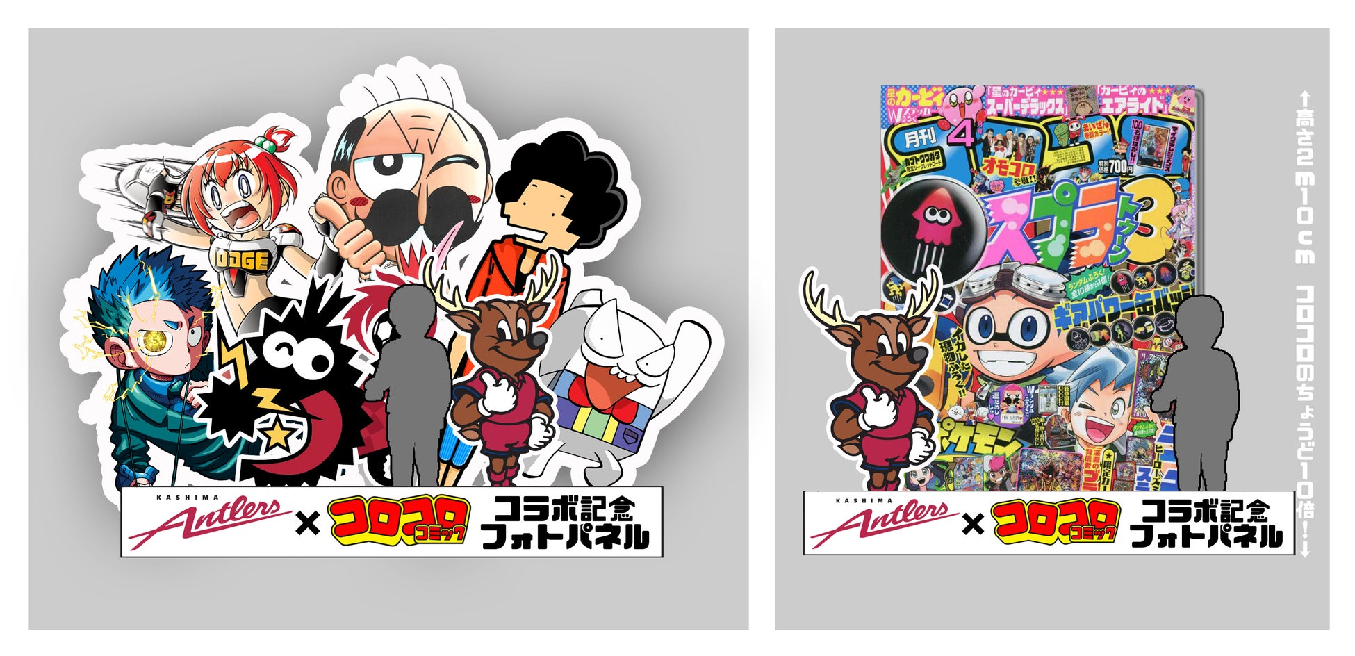 湘南戦では、クイズスタンプラリーや特別抽選会など楽しい企画が予定されており、コロコロコミックのキャラクターとアントラーズがコラボした限定フォトスポットも登場します。