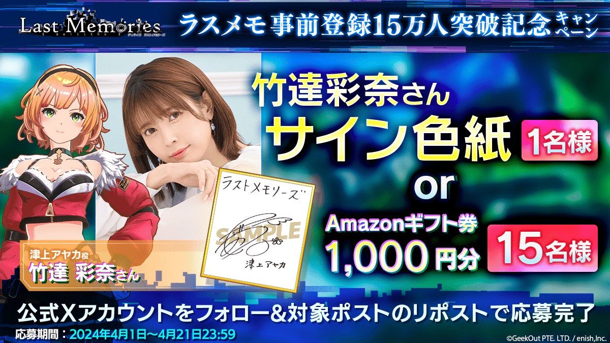 • 竹達彩奈さんのサイン色紙やAmazonギフト券が当たる記念キャンペーン開催