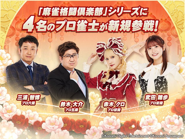 コナミアミューズメントは、『麻雀格闘倶楽部 Extreme』と『麻雀格闘倶楽部Sp』に日本プロ麻雀連盟のプロ雀士4人を追加参戦させることを発表しました。