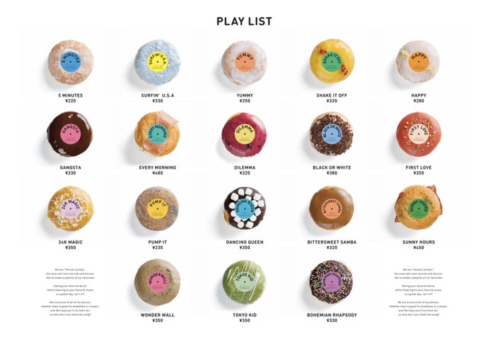 気分に合わせて楽曲にインスパイアされたドーナツを選ぶことができます。
