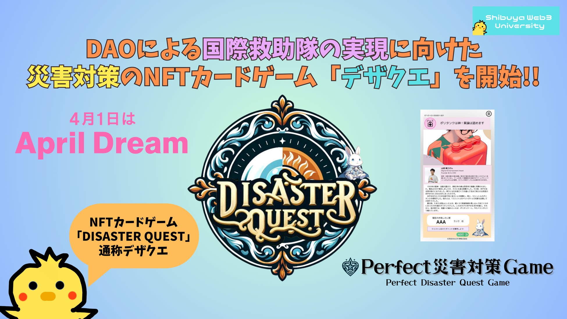 4月1日を「夢を発信する日」とするApril Dreamに賛同し、DAOによる国際救助隊を目指します。