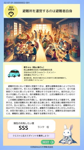 災害対策を楽しく学び、行動を促すゲーム性を取り入れ、参加者の意識改革を目指します。