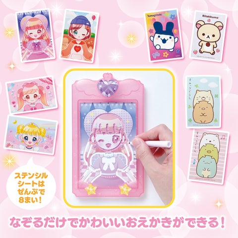 おえかきやぬりえ、めいろ、クイズなど楽しいコンテンツが満載で、特別なおえかきボードやまほうペンで簡単にかわいい絵が描けます。