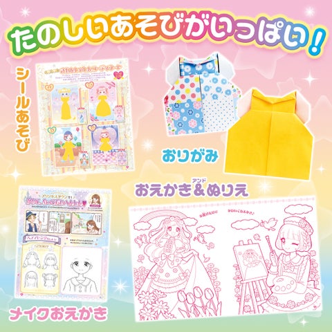 キラキラ★きねんしゃしんコーディネートやプリンセスタウンでのおしゃれ記事など、楽しいページが満載で、初登場のキャラクターや大人気キャラクターたちの遊びページも充実しています。