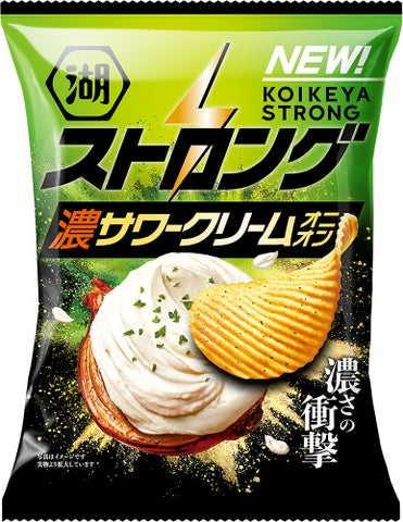 リニューアルされた「湖池屋ストロング 濃サワークリームオニオン」「湖池屋ストロング ガチ濃厚ピザ」「湖池屋ストロング 鬼コンソメ」の3品も発売されます。
