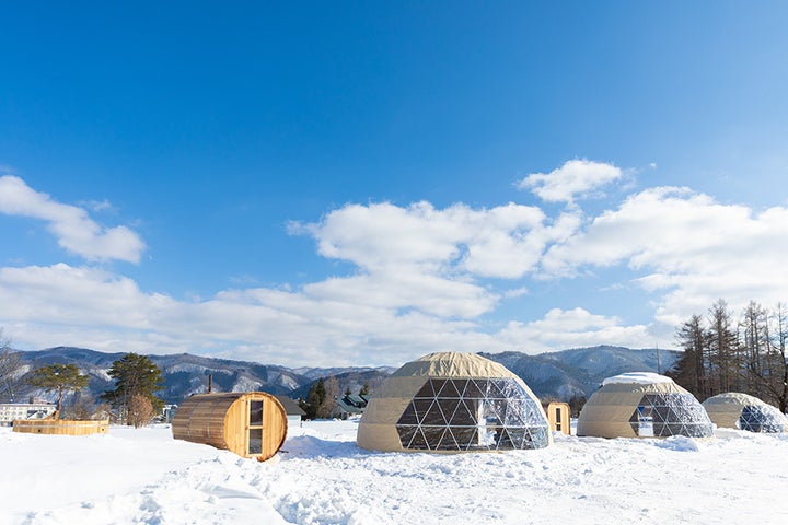 FromPはプライベートサウナ付きドーム型テントのグランピング施設を運営し、白馬村に貢献しています。