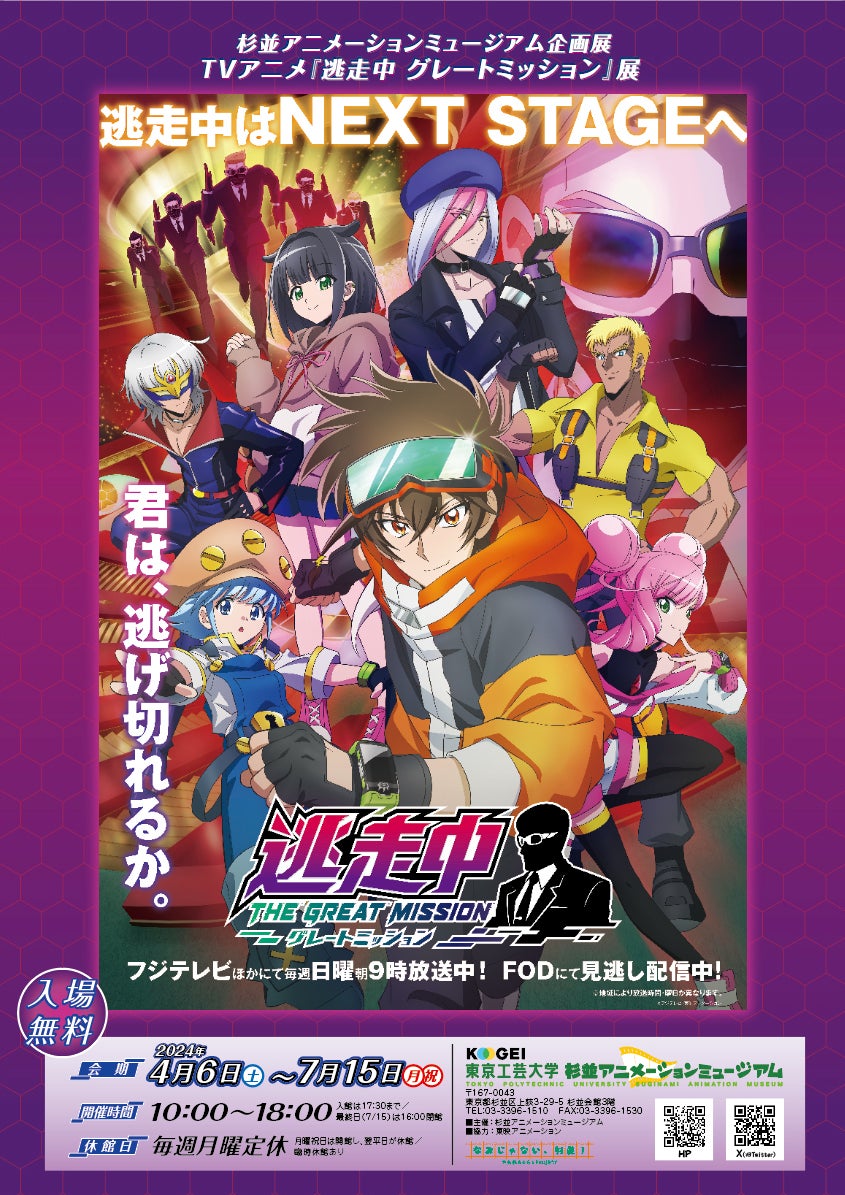 2024年4月6日から7月15日まで、東京工芸大学杉並アニメーションミュージアムで開催される「TVアニメ『逃走中 グレートミッション』展」では、アニメの設定資料や背景美術が劇中のステージごとに展示されます。