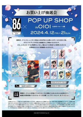 株式会社faveは、2024年4月12日から有楽町マルイ8階でTVアニメ「86―エイティシックス―」のPOP UP SHOPを開催します。