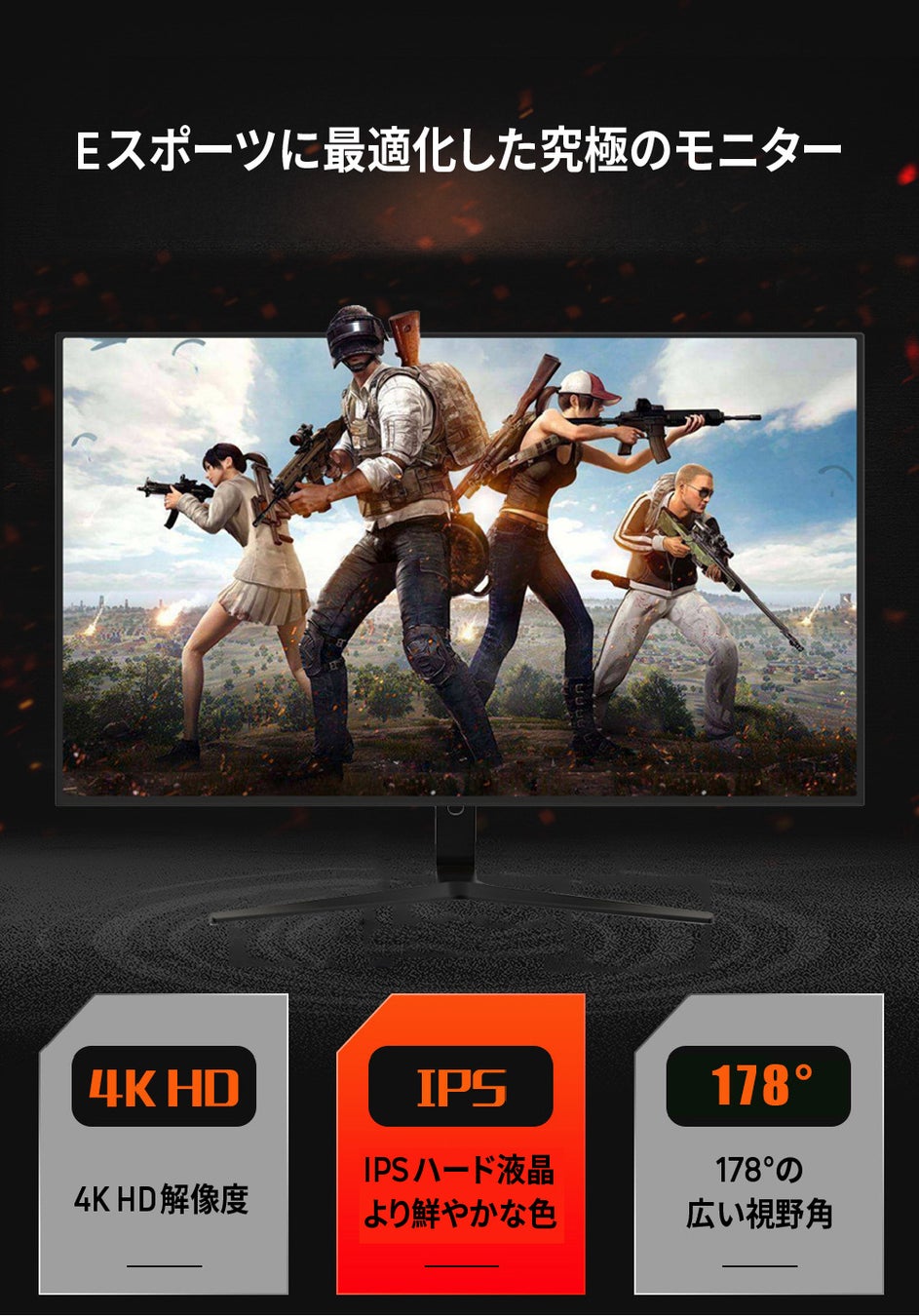 - 2. 4K高解像度、GTG 8msの素早いレスポンス、Display HDR規格に準拠した色彩表現、DCIP3色域の90%をカバーするIPSパネルを備え、Eスポーツに最適化。