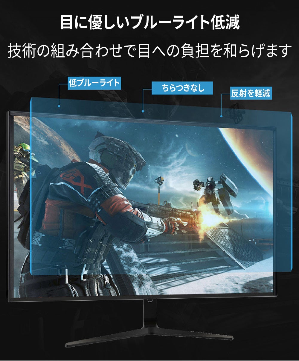 ブルーライトを軽減し、ちらつきのない画面を実現。