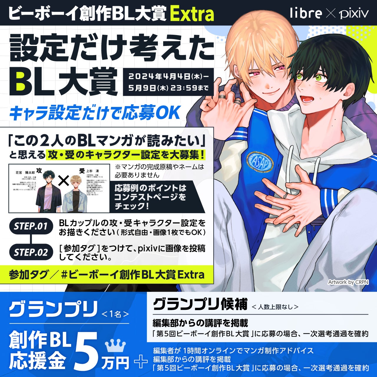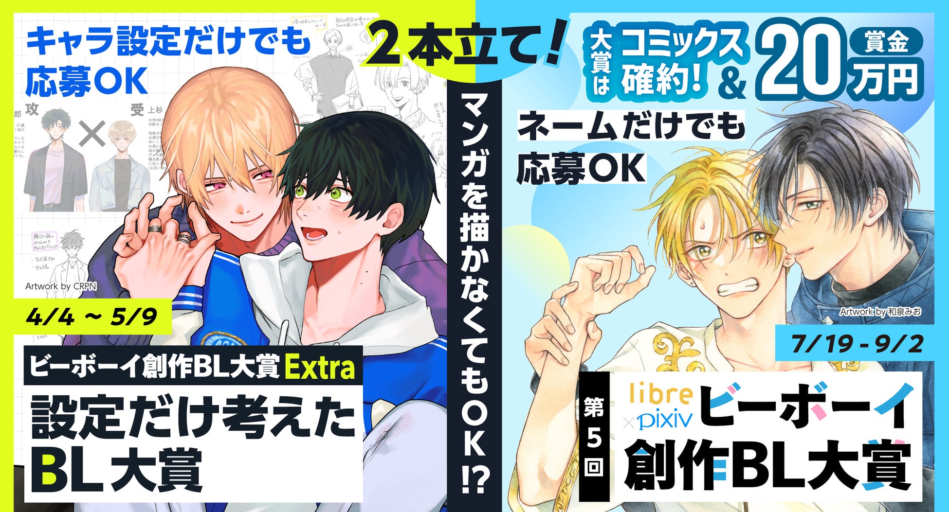 2024年4月には「設定だけ考えたBL大賞」が開催され、7月には「第5回 libre×pixiv ビーボーイ創作BL大賞」が開催されます。