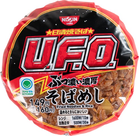 - おむすび、日清焼そばU.F.O.ぶっ濃い濃厚そばめし、どん兵衛天ぷらむすび、ファミマル