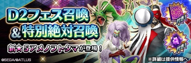 2024年4月4日から18日までの期間、新★5悪魔「秘神 アメノフトタマ」が登場する「D2フェス召喚&特別絶対召喚」が開催されます。