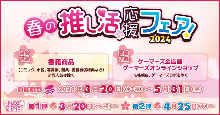 2024年3月20日から5月31日に開催される『春の推し活応援フェア!2024』は、ゲーマーズ全店舗とオンラインショップで行われる書籍フェアです。