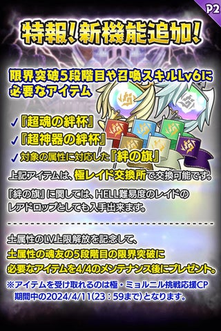 限界突破5段階目やレイド挑戦回数の解放もあります。