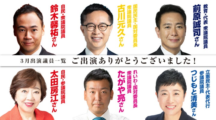 選挙期間中は現職の政治家は原則として出演せず、公平性とバランスを重視しています。