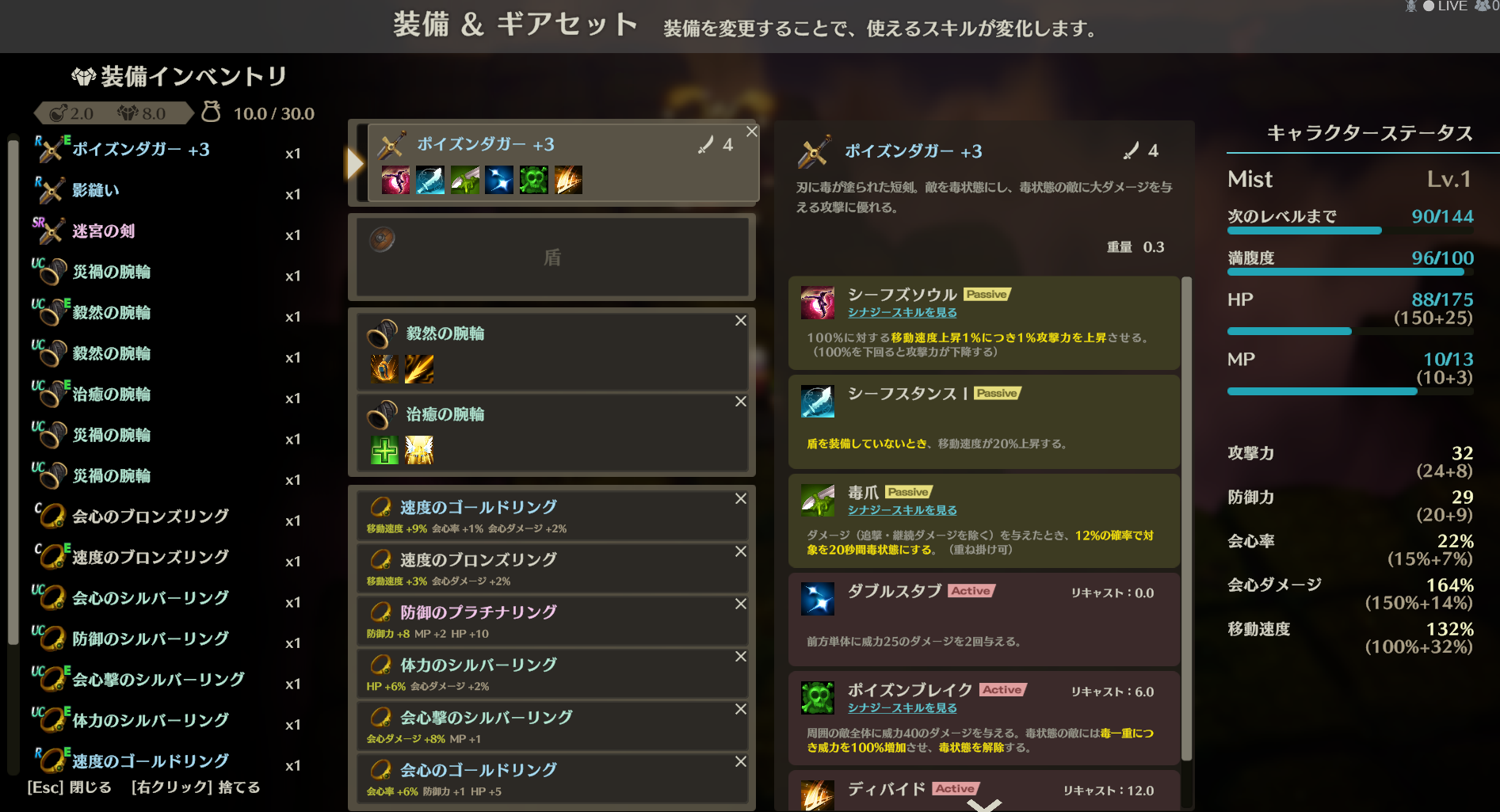 ② クリア時の装備画面(ビルド)のスクリーンショットを添付してください