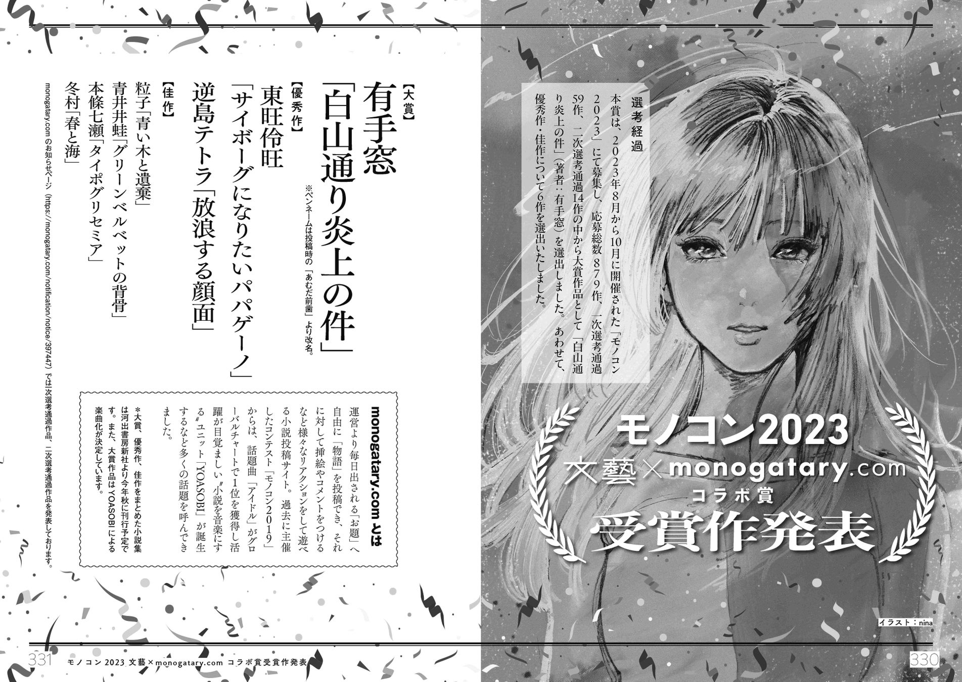 著者の有手窓による受賞のコメントや選評が掲載されており、人気音楽ユニット「YOASOBI」による楽曲化も決定されました。