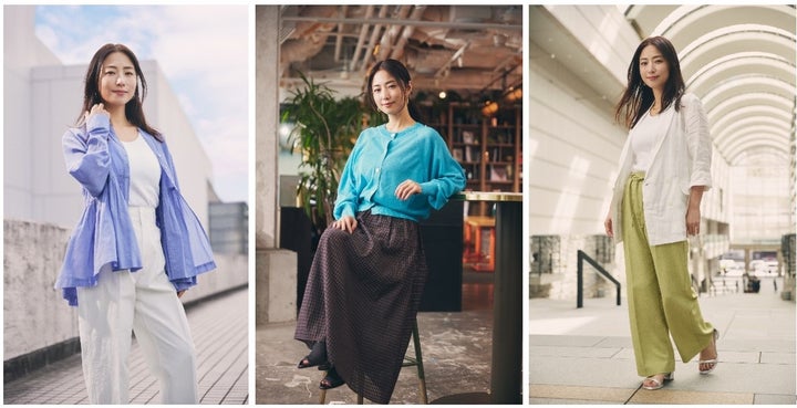 新CMではMEGUMIさんが起用され、ブラウス、カーディガン、パンツの3アイテムが特徴です。